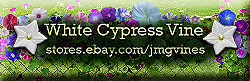 | Varieties Available | Ipomoea Quamoclit |This little gem is a delight to see in the morning! A series of collections of little white 5-point stars is almost surreal against the background of its deeply lobed leaves. Very attractive to butterflies and very prolific seed producer. Some mutations of 4-point and 6-point stars have been observed on the plant that produced these seeds. Grows quickly 10 to 15 ft and produces 2 to 4 small oblong seeds per pod. Cypress Vine comes in white, pink or red.